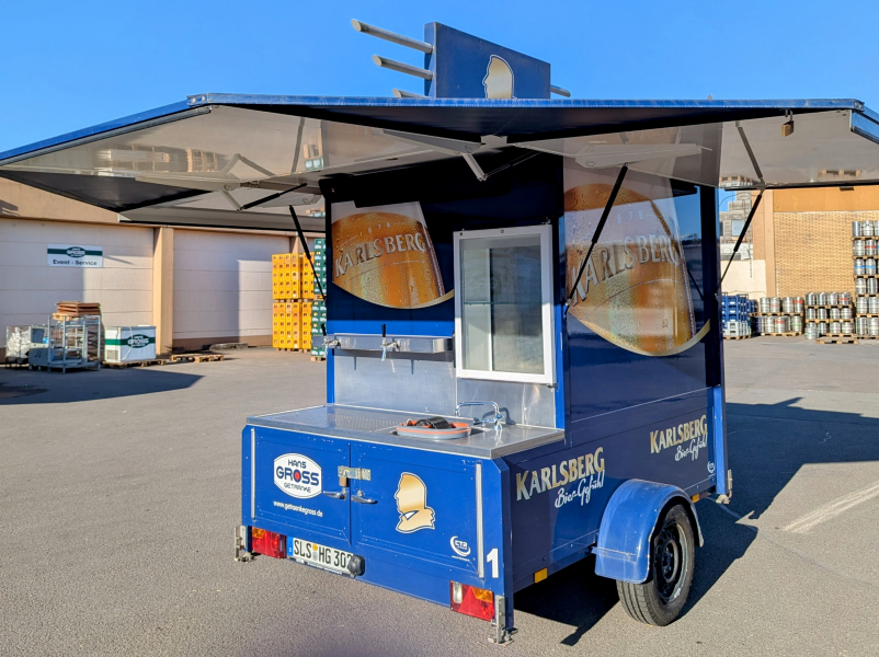 Geräumige Kühlzelle, Vitrinenkühlschrank, Musikanlage, programmierbares Schriftdisplay.
